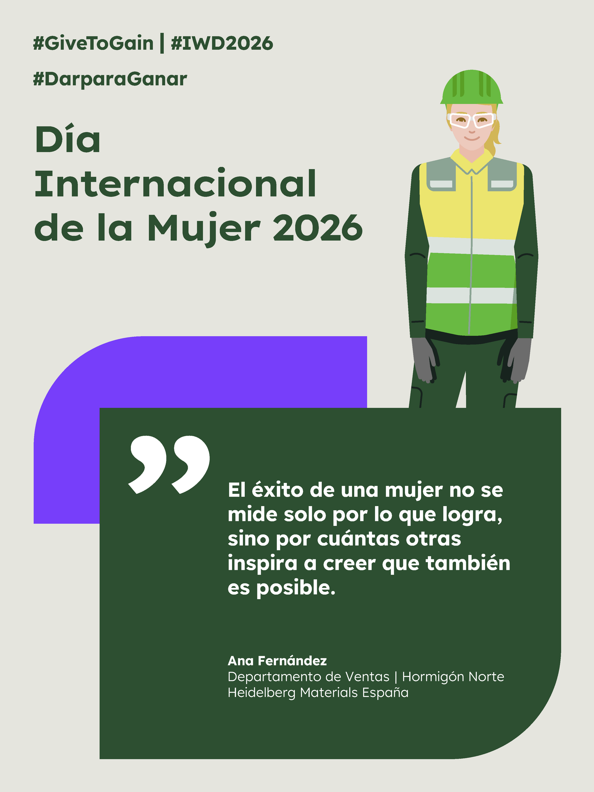 En el Día Internacional de la Mujer, desde Heidelberg Materials reafirmamos nuestro compromiso: dar voz, dar espacio y dar oportunidades para que ganemos todos. Es un compromiso que nos hace más fuertes y mejores.